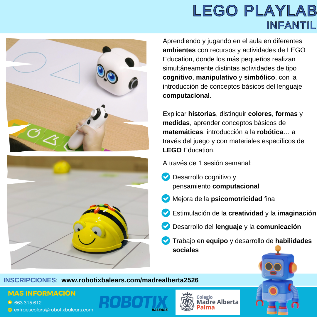 • A través de un enfoque práctico y divertido, los alumnos desarrollan la creatividad, el pensamiento computacional y el trabajo en equipo mientras construyen y programan sus propios robots con LEGO Education.